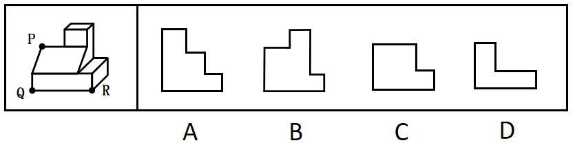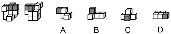 左边为由12个白色正方体和3个灰色正方体组合而成的多面体前后两面直观图,问其可以由除哪项外的三个多面体组合而成?