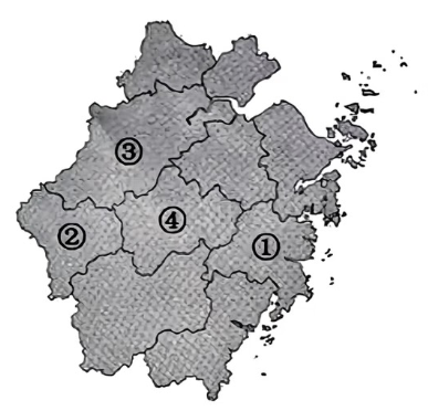 下图是浙江省地图。下列标号的地市与相关表述,对应不正确的是( )。