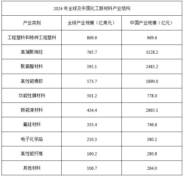 根据资料推算汇率换算,化工新材料产业结构中,2024年中国产业规模占全球比重超过70%的有几类?