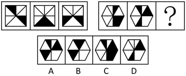 从所给的四个选项中,选择最合适的一个填入问号处,使之呈现一定的规律性: