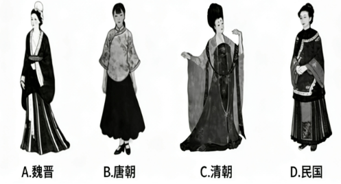 中国历史上不同时期,衣着服饰各具特色。下列服饰与其相对应时期正确的是( )。