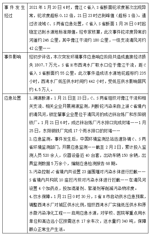 在Y市环境应急与事故调查中心的一次业务培训中,学习分享了一起跨省级行政区域影响的重大突发环境事件。下面是事件报告部分摘录: