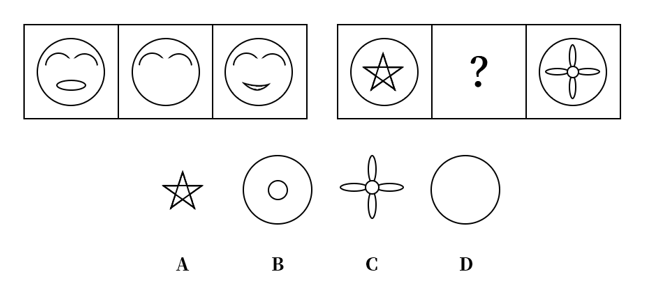 从所给四个选项中,选择最合适的一个填入问号处,使之呈现一定规律性( )。