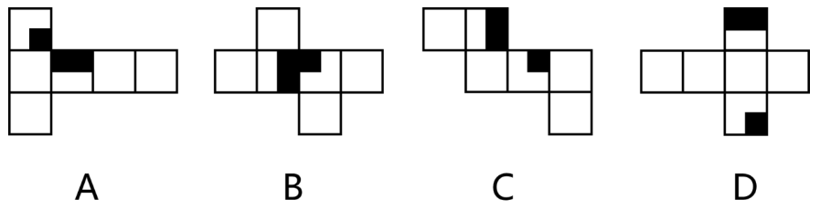 下列4个外表面展开图构成的正方体中与其他3个不同的是( )。