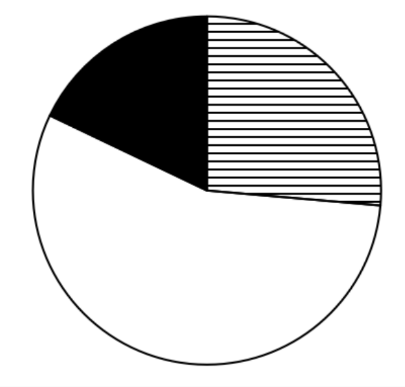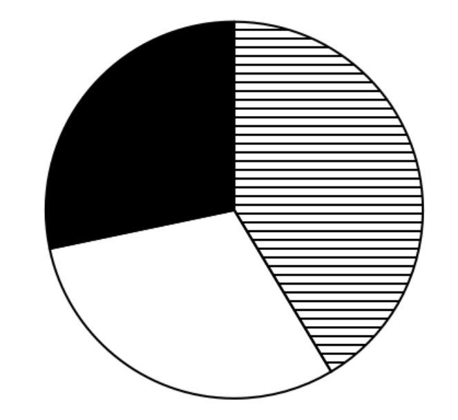 已知,以下饼图中,最能准确反映2024年我国小型挖掘机(横线)、中型挖掘机(白色)和大型挖掘机(灰色)出口销量的比例关系的是( )。