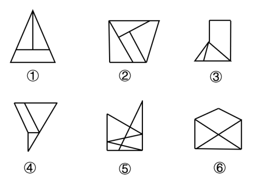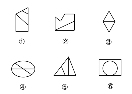 把下面的六个图形分为两类,使每一类都有各自的共同特征或规律,分类正确的一项是( )。
