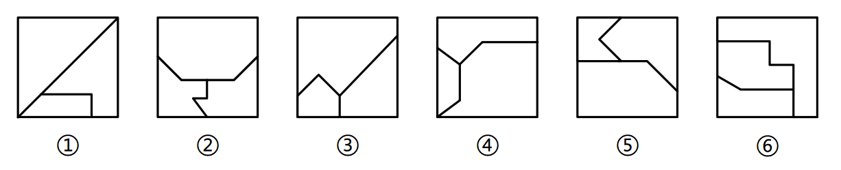 把下面的六个图形分为两类,使每一类图形都有各自的共同特征或规律,分类正确的一项是( )。