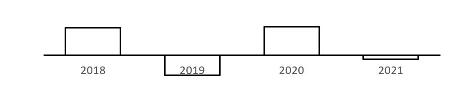 以下柱状图反映了2018~2021年间哪一项政府采购规模同比增量的变化趋势(横轴位置代表增量为0)?( )