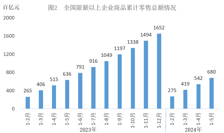 2024年3~5月,全国限额以上企业商品当月零售总额同比增量( )。