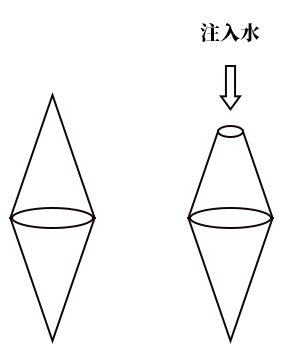 一个容器上下两部分本是相同的空心圆锥体(如左图所示),现将其上部分圆锥体截去若干高度。若从容器上方开口处匀速向内注入水(如右图所示),64分钟后下部分容器刚好灌满水,再过63分钟后上部分容器刚好灌满水。问容器上下两部分高度之比为多少?( )