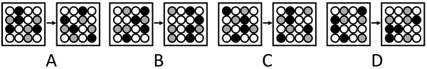 以下四个选项中,哪一个是由8个白色、4个黑色正方体组合而成的长方体的外表面展开图?