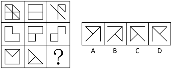 从所给的四个选项中,选择最合适的一个填入问号处,使之呈现一定的规律性: