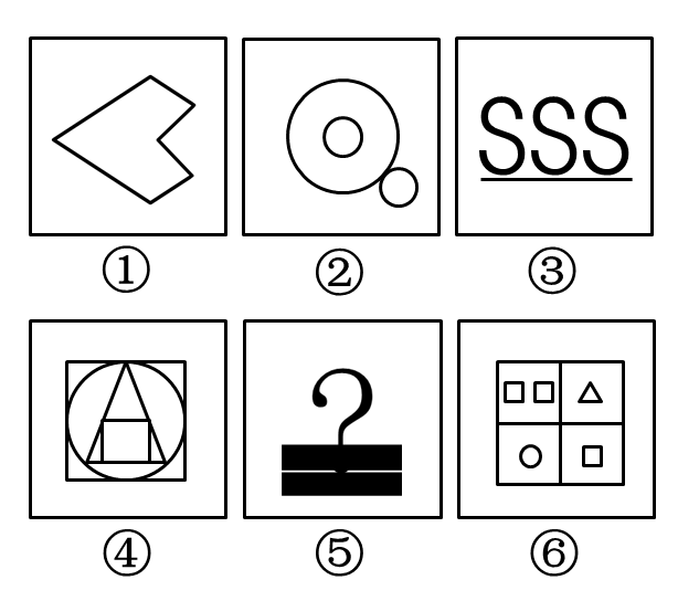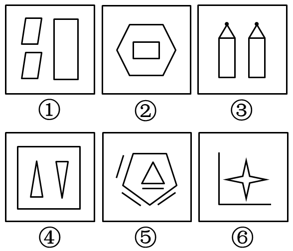 把下面六个图形分为两类,使每一类图形都有各自的共同特征或规律,分类正确的一项是: