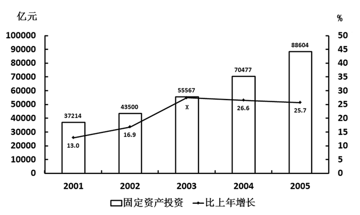2005年的全社会固定资产投资约比2001年增长了: