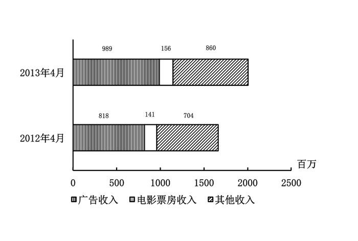 2012及2013年1~4月某市电影院线票房情况