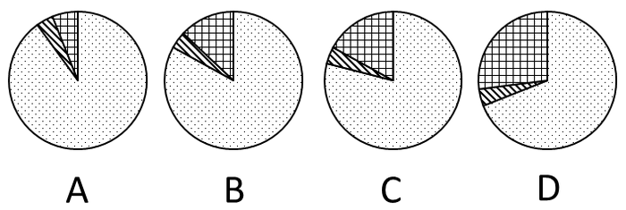 下列哪一张图能反映2012年清洁能源机组并网容量中水电、核电和新能源发电的构成: